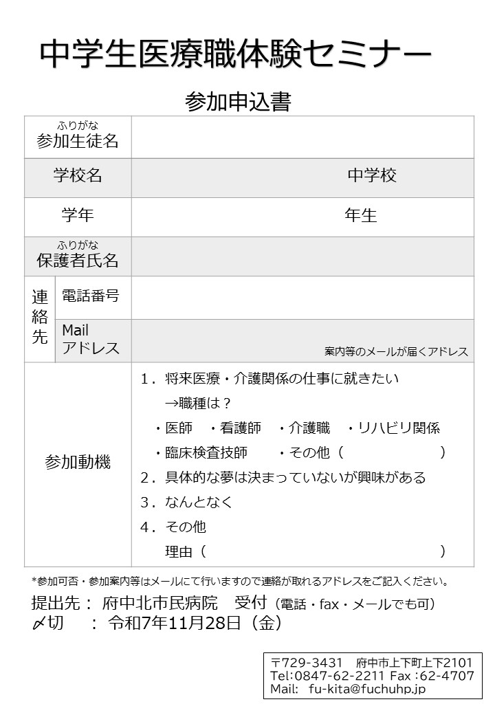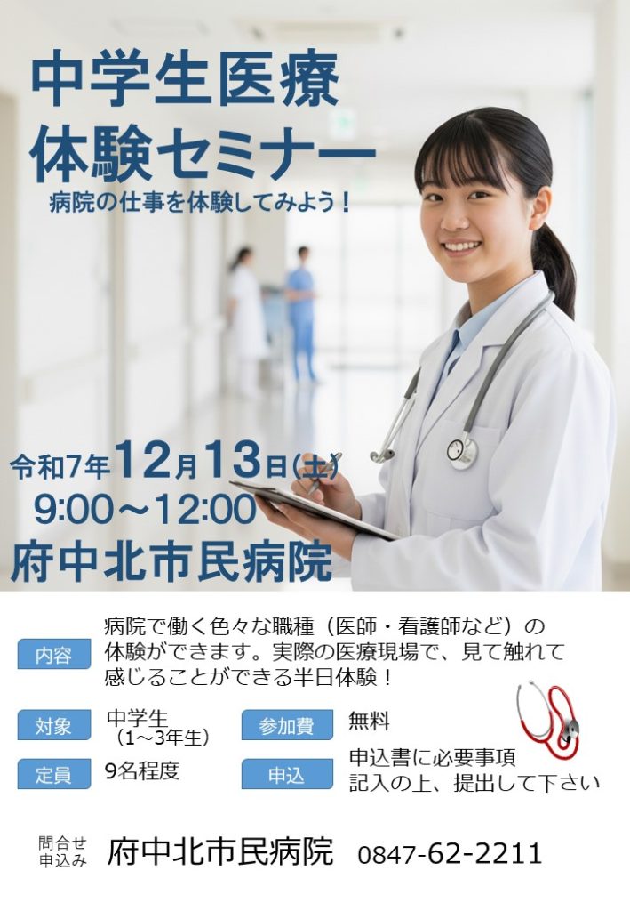 令和7年度 中学生医療体験セミナー 参加者募集のお知らせ